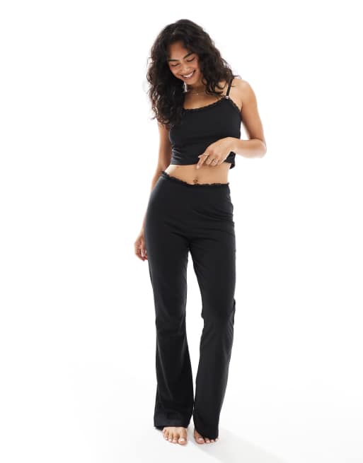 The Frolic - Sorte pyjamasbukser med blondekanter i jersey i slim fit - Del af sæt - Kun hos ASOS