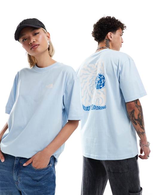 The North Face - Exotic Days - Oversized t-shirt med print på ryggen i lyseblå og hvid