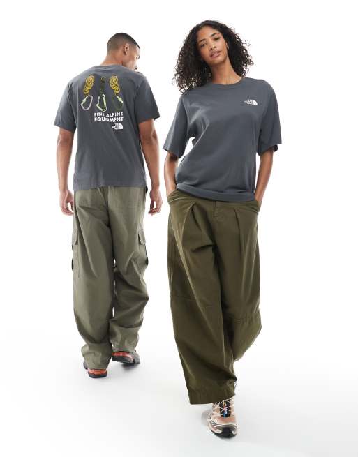 The North Face - Explore Gear - Unisex - Forvasket grå afslappet T-shirt med print på ryggen
