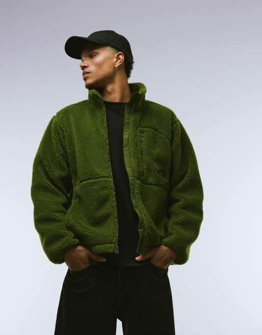 The North Face - Extreme Pile - Grøn fleecejakke med lynlås i kraftigt imiteret lammeskind