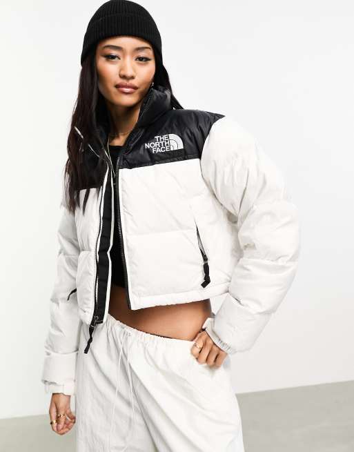 The North Face - Nuptse - Cropped dynejakke i cremehvid og sort