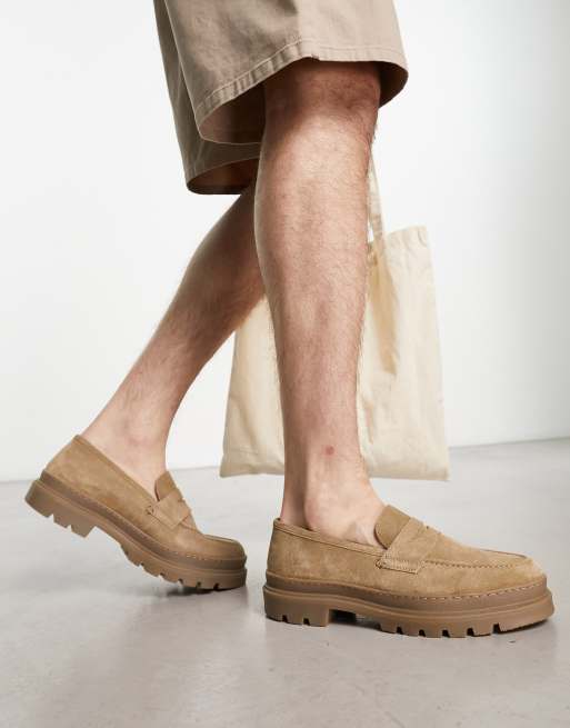 Thomas Crick - Chunky saddel-loafers i gråbrunt ruskind