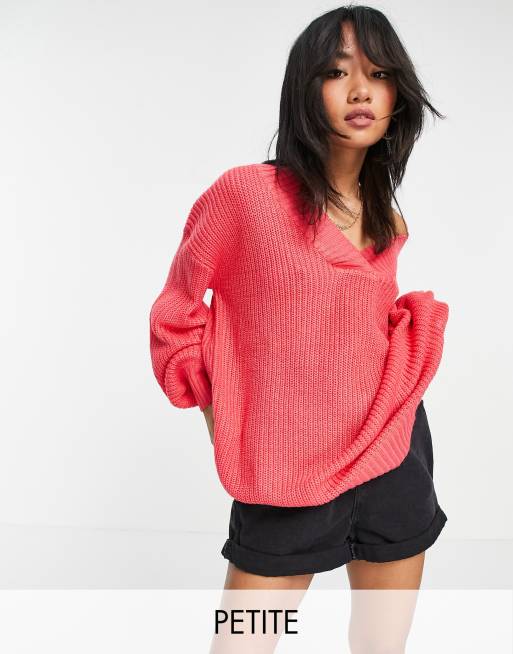 Threadbare Petite - Adeline - Oversized lyserød sweaterkjole med V-hals
