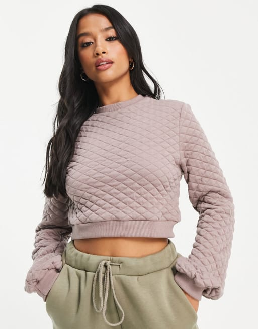 Threadbare Petite - Gråbrunt sæt med vatteret sweater og shorts