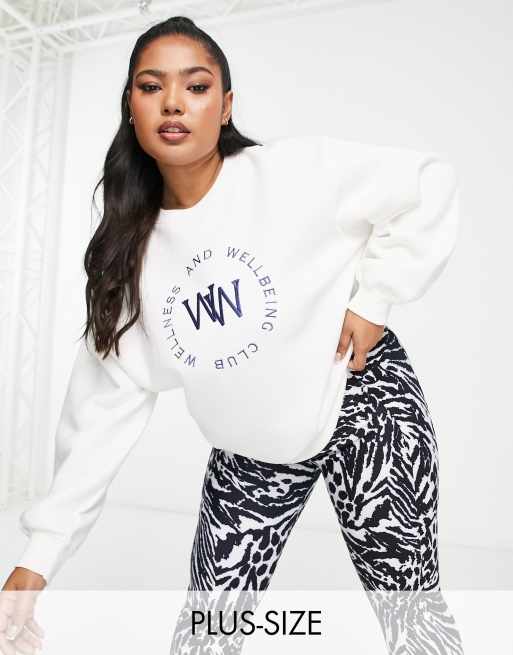 Threadbare Plus - Fitness Dixie - Hvid sweater med 'wellness'-broderi