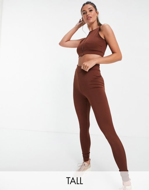 Threadbare - Fitness Tall - Brunt gymnastiksæt med leggings og croptop med lynlås foran