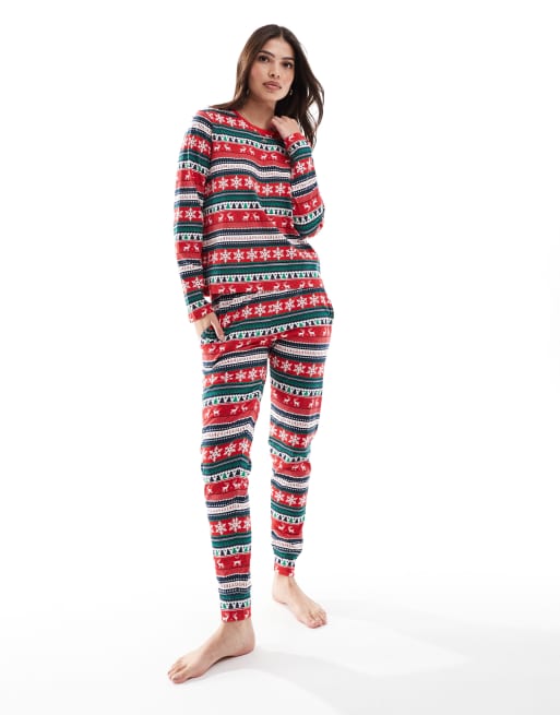 Threadbare - Jul - Rødt og langt pyjamassæt med islandsk print