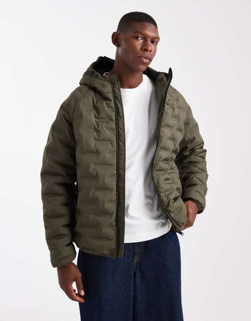 Threadbare - Kakigrøn dynejakke med tekstur og hætte