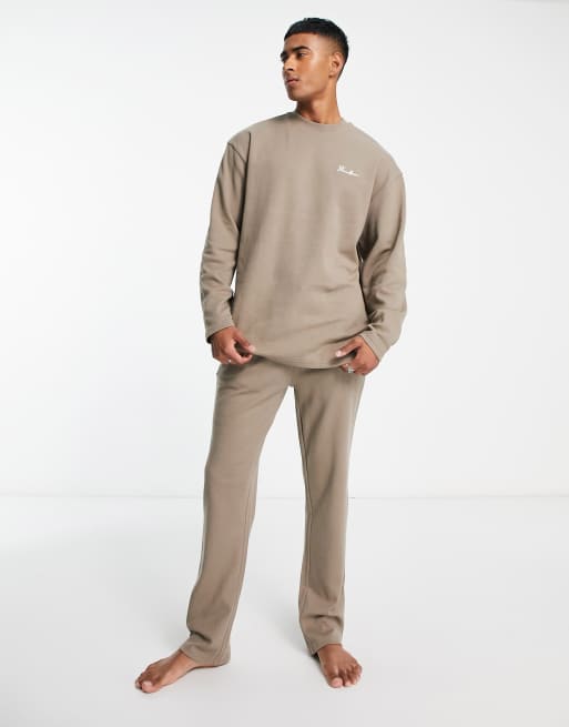 Threadbare - Kelly - Oversized gråbrunt loungesæt med vaffeltekstur