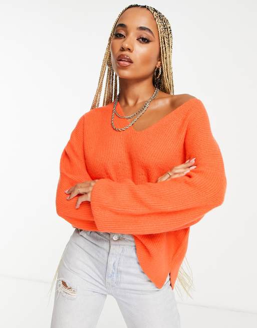 Threadbare - Løstsiddende trøje med V-hals i orange