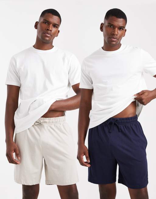 Threadbare - Marineblå og beige loungeshorts i bomuldsblandingsmateriale med løbesnor i pakke med 2 par