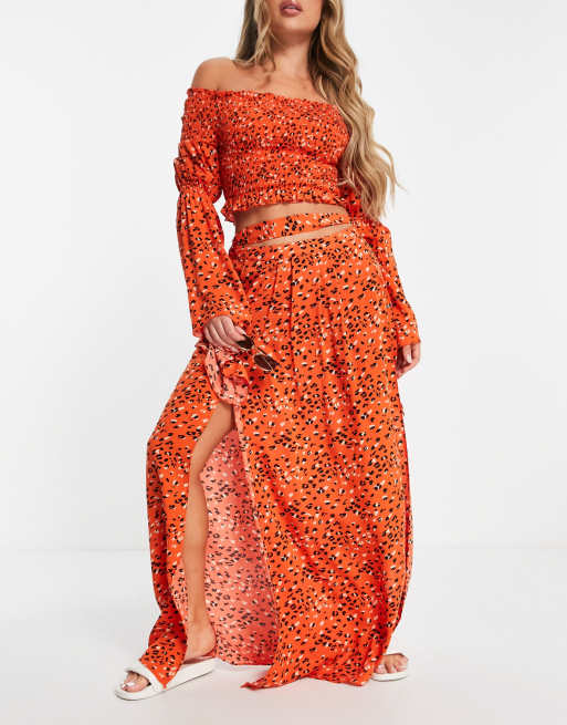 Threadbare - Maxi-strandnederdel og croptop i orange med leopardprint - Del af sæt