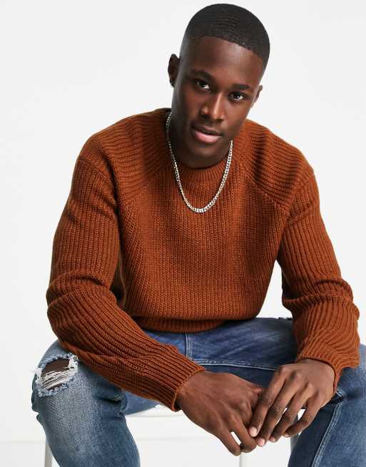 Threadbare - Oversized kraftig trøje i kastanjebrunt fiskerstrik