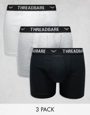 Threadbare - Pakke med 3 par sorte/grå/hvide boksershorts