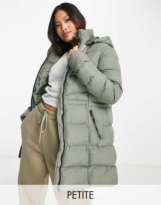 Threadbare Petite - Eeyore - Salviegrøn let dynejakke i mellemlang længde med hætte
