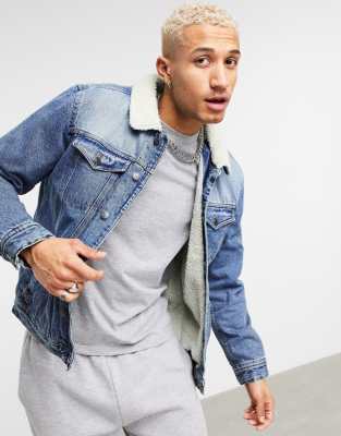 Threadbare - Phillip - Sherpa-foret denimjakke i stenvask