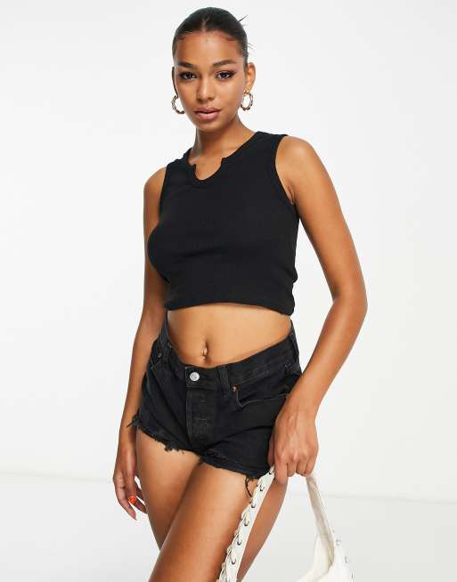 Threadbare - Ærmeløs croptop med hak foran i sort