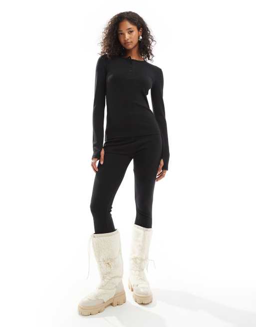 Threadbare - Ski - Ribstrikket sæt med skiundertrøje og leggings i sort