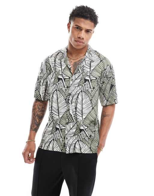 Threadbare - Skjorte med reverskrave og gennemgående bladprint
