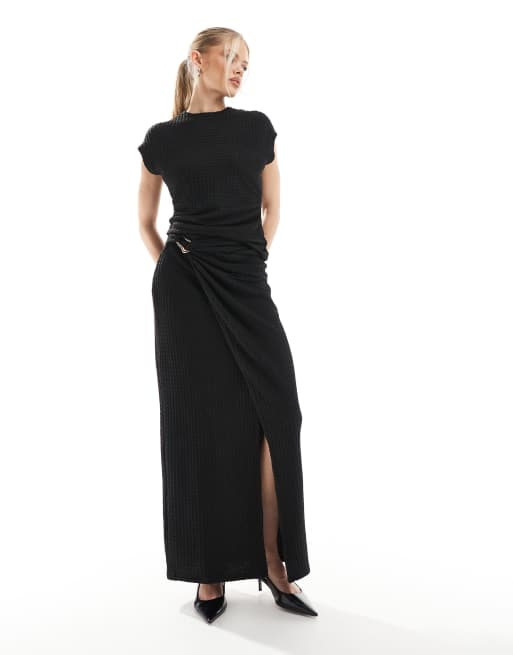 Threadbare - Sort maxinederdel med tekstur og guldfarvet kantdetalje - Del af sæt
