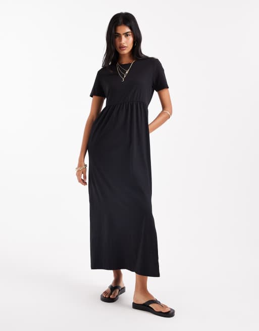 Threadbare - Sort midikjole med korte ærmer og sænket talje i jersey
