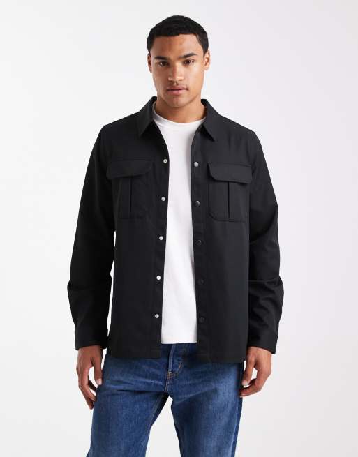 Threadbare - Sort skjortejakke med knapper og lommer foran