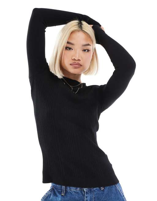 Threadbare - Sort tætsiddende strikket trøje med rullekrave