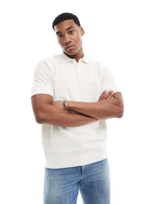 Threadbare - Strikket polotrøje med striber i ecrufarve