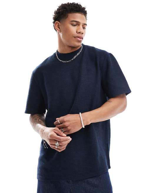 Threadbare - T-shirt i afslappet pasform i marineblå med striber og tekstur