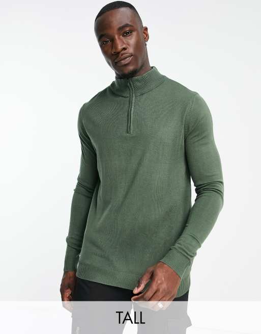 Threadbare Tall - Blød trøje med kvart lynlås og ståkrave i grøn