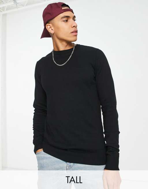 Threadbare Tall - Sort trøje med crewneck i bomuld