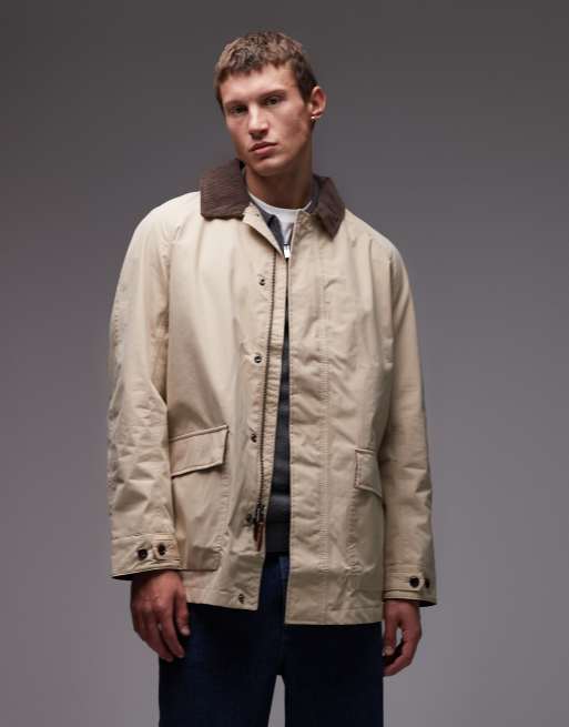Timberland - Beige forvasket frakke med krave i fløjl