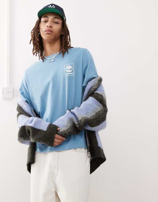 Timberland - Lyseblå T-shirt med firkantet logo på brystet