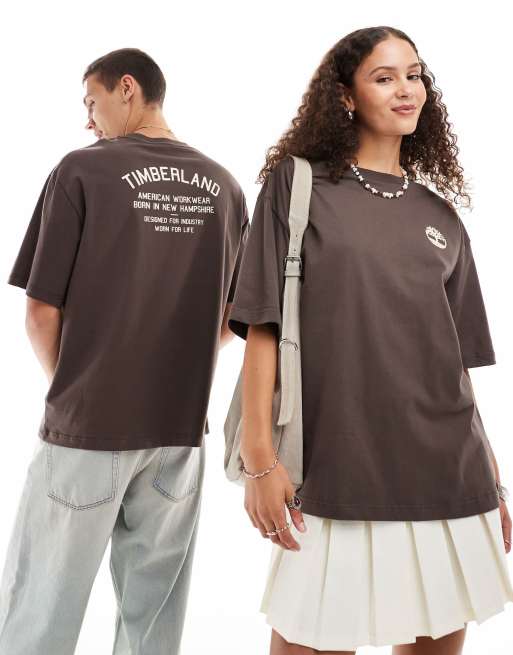 Timberland - Oversized workwear-t-shirt i brun med logo - Kun hos ASOS