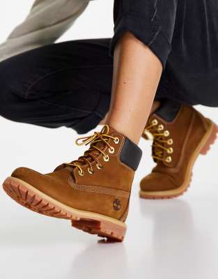 Timberland - Rustfarvede, premium, 6 tommer flade støvler med snørebånd