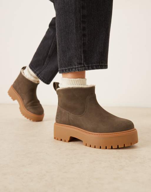 Timberland - Stone Street - Mørkebrune Chelsea-støvler i læder med plateausål og for i imiteret lammeskind