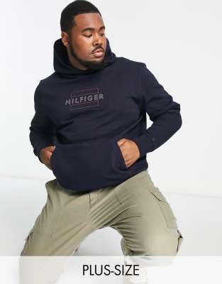 Tommy Hilfiger Big & Tall - Marineblå hættetrøje med lineært flaglogo