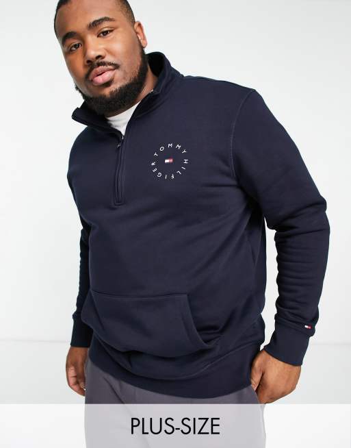 Tommy Hilfiger Big & Tall - Marineblå sweatshirt med lille cirkellogo og halv lynlås