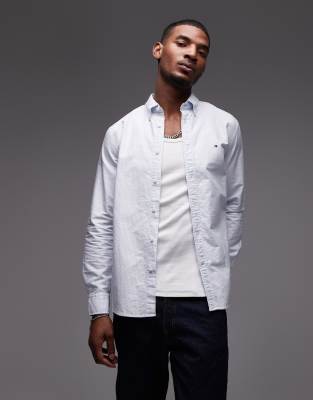 Tommy Hilfiger - Blå Oxford-skjorte med lange ærmer og striber