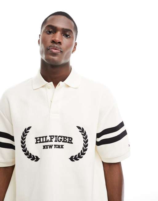 Tommy Hilfiger - Cremefarvet polotrøje med tekstprint