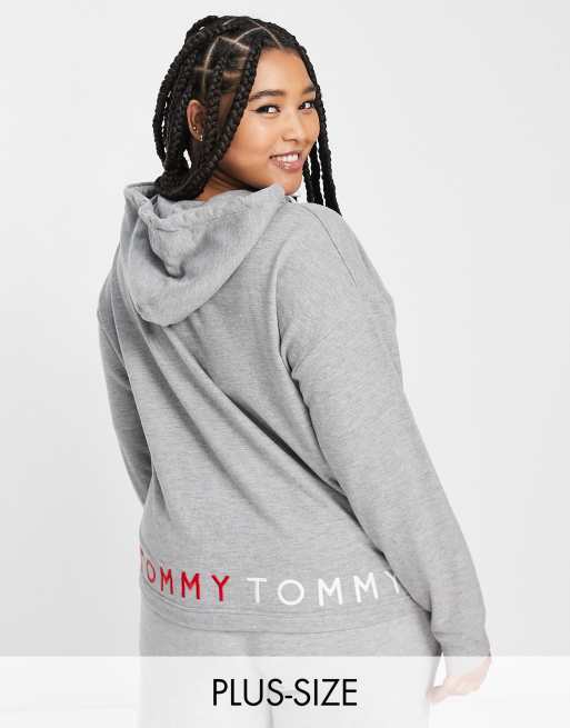 Tommy Hilfiger Curve - Lounge-hættetrøje i mellemgrå med brodering