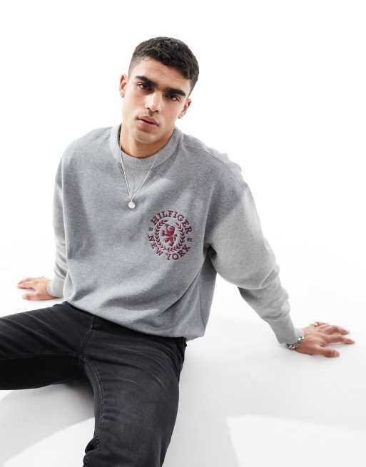 Tommy Hilfiger - Grå med rund hals og lille våbenskjold