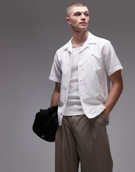 Tommy Hilfiger - Hvid skjorte med korte ærmer i hørblanding