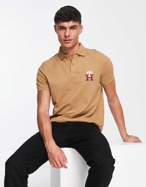 Tommy Hilfiger - Lysebrun polotrøje med monogramlogo i piqué-bomuldsblanding