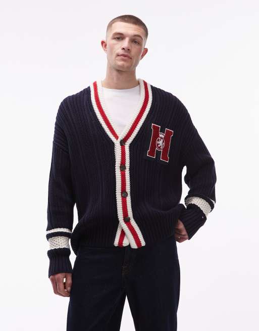 Tommy Hilfiger - Marineblå og rød cardigan med broderet logo
