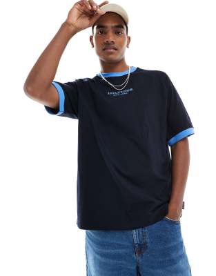 Tommy Hilfiger - Marineblå T-shirt med kontrasterende kanter og logoprint
