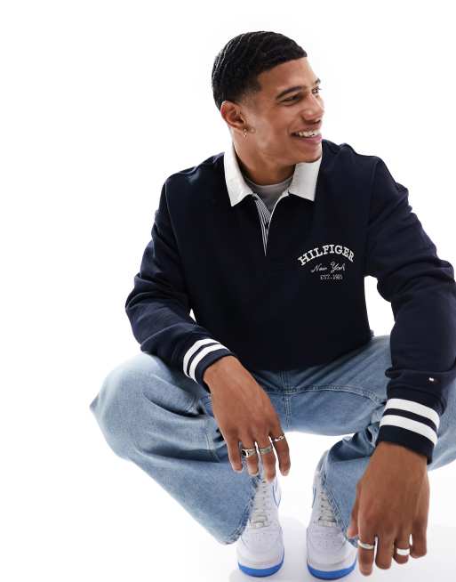 Tommy Hilfiger - Mørk marineblå rugby-skjorte i preppy stil