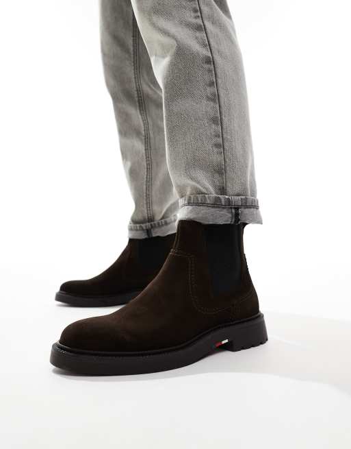 Tommy Hilfiger - Mørkebrune Chelsea-støvler i ruskind