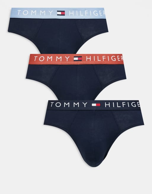 Tommy Hilfiger - Original - Pakke med 3 par marineblå briefs med marineblåt/kobberfarvet/blåt logo-taljebånd