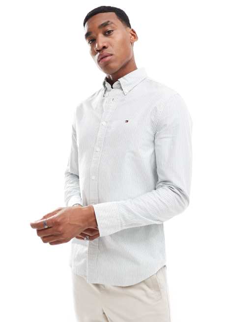 Tommy Hilfiger - Oxford-skjorte med grønne/hvide striber